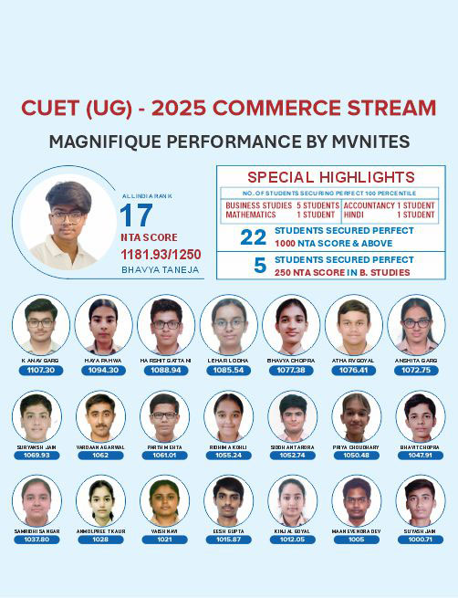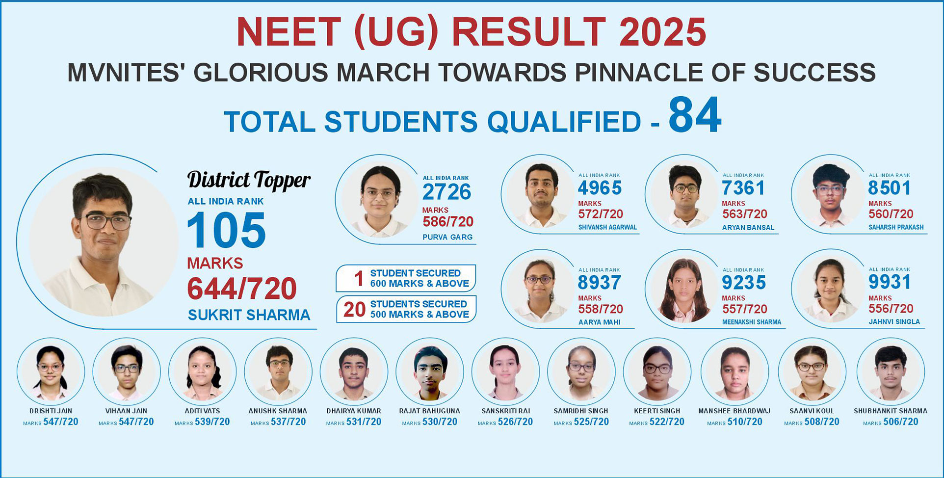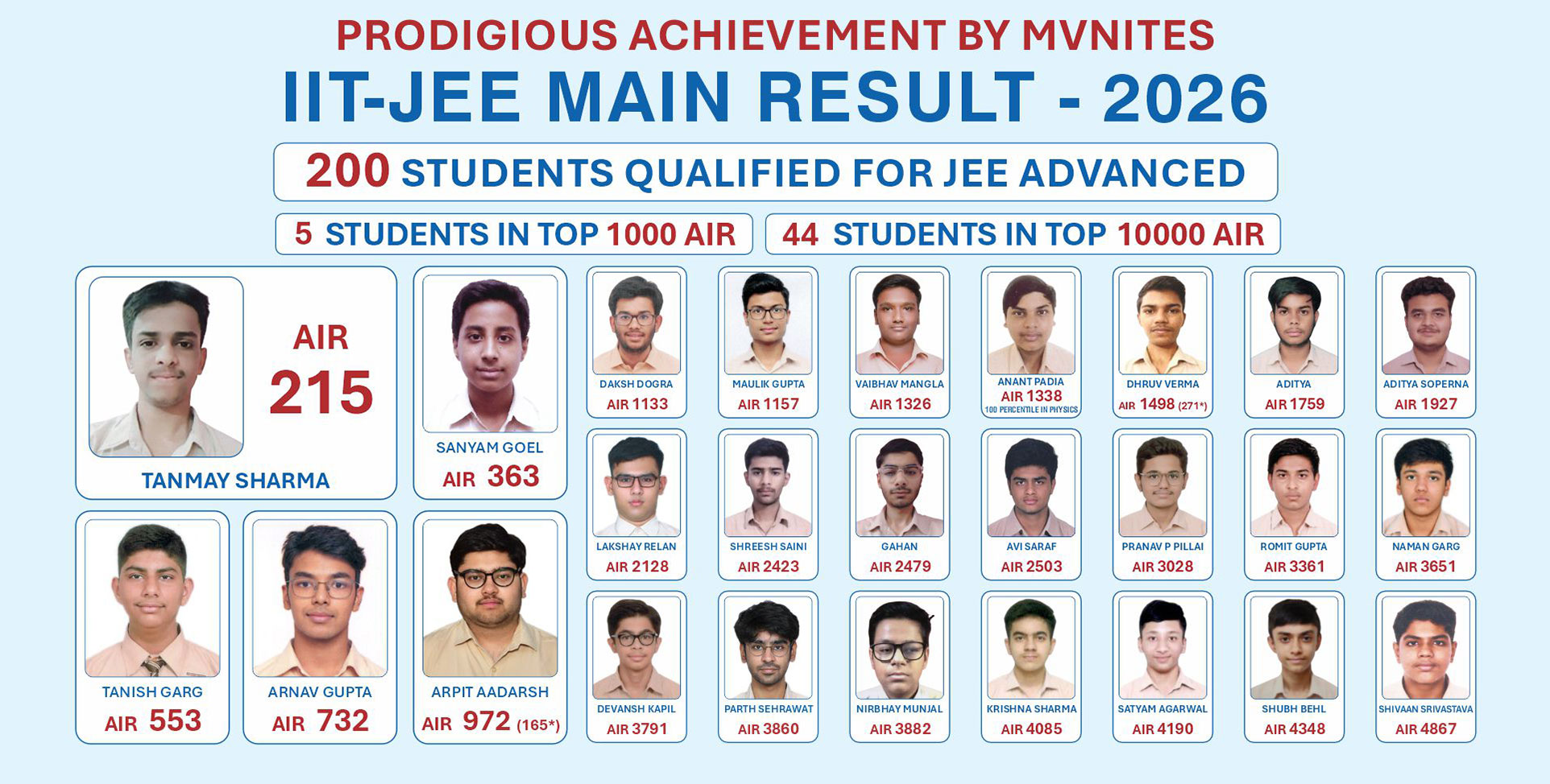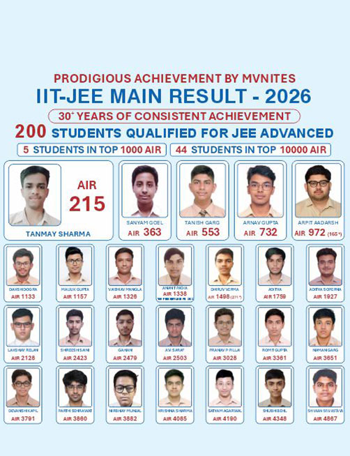 KAVYAM RANJAN SHARMA - AIR 248, CHAITANYA GARG - AIR 260, RAYANSH GUPTA - AIR 340, EKANSH GUPTA - AIR 635, YASH CHAUDHARY - AIR 674.