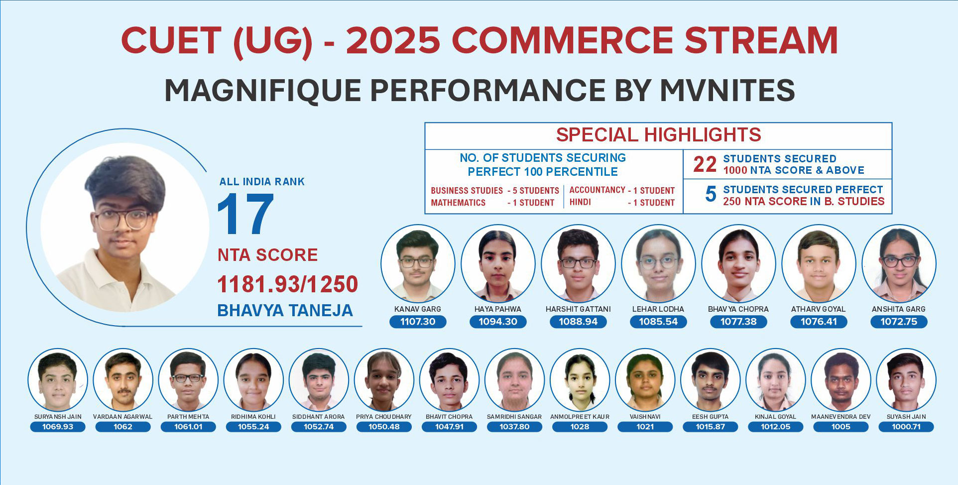 KAVYAM RANJAN SHARMA - AIR 150 (DISTRICT TOPPER), CHAITANYA GARG - AIR 451, RAYANSH - AIR 483, VAANIE LLAMBA - AIR 560