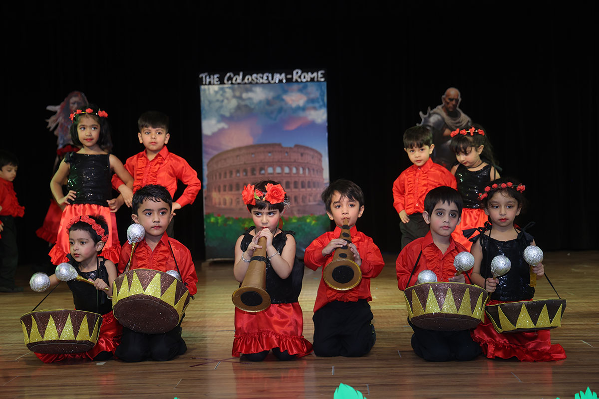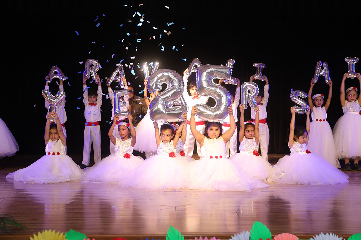 Annual Day is organized each year by different wings of the school where students showcase their artistic talent to the parents. These are theme based mega-events that weave together a string of performances based on some well thought aspects of life, depicted through plays, songs, dances etc leading to a roaring culmination. The Annual Day also presents important messages which probe our students to ponder and reflect enhancing their personality and skills. Students look forward to the annual day and cherish the entire journey from selections to practices, dress rehearsals to the final event, accumulating loads of fond memories on the way.