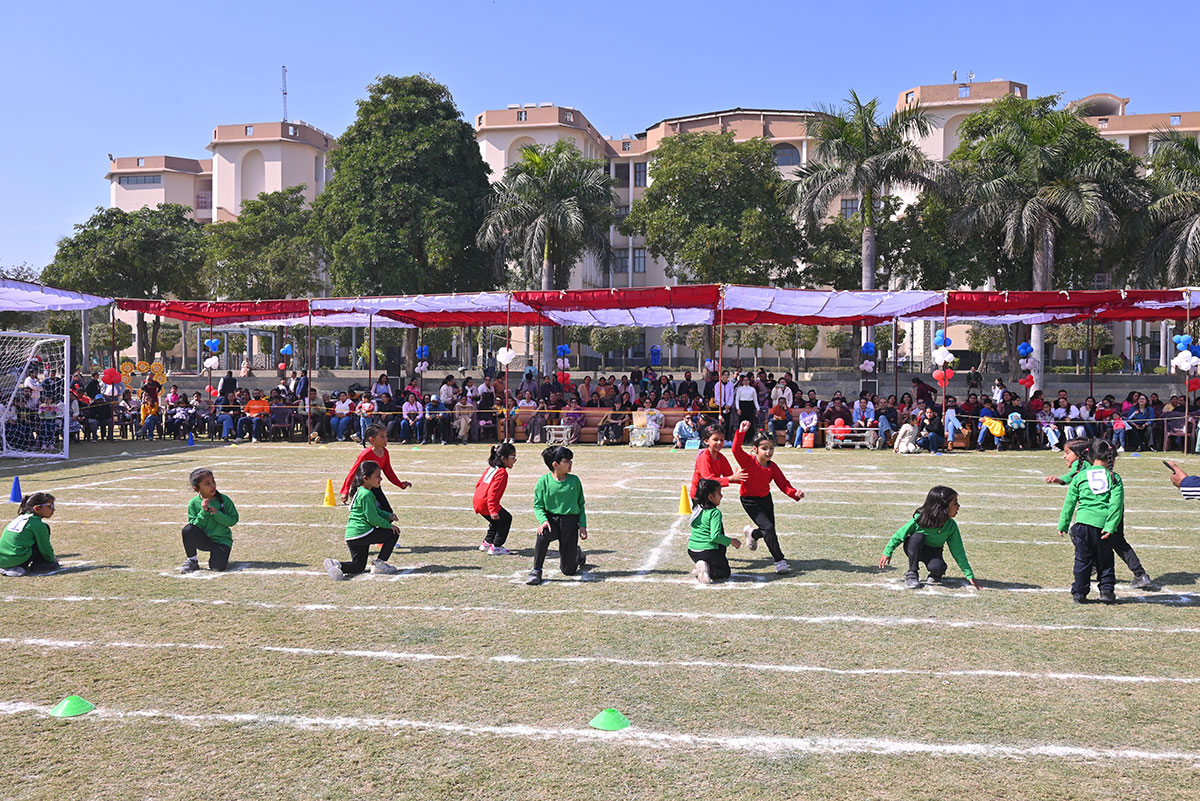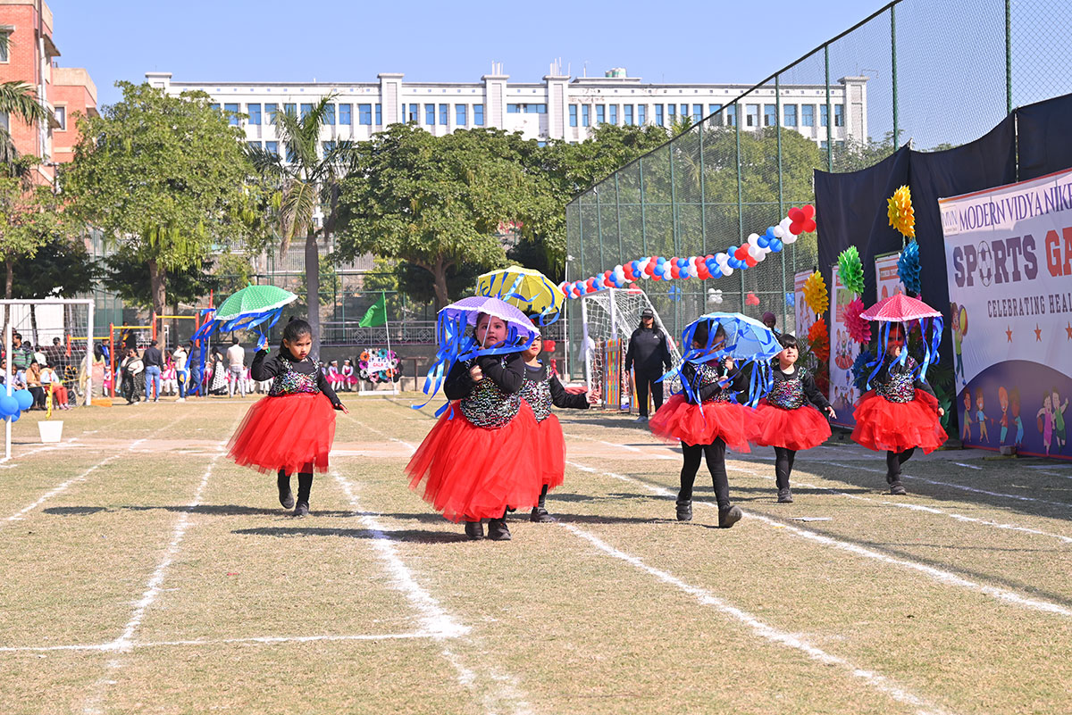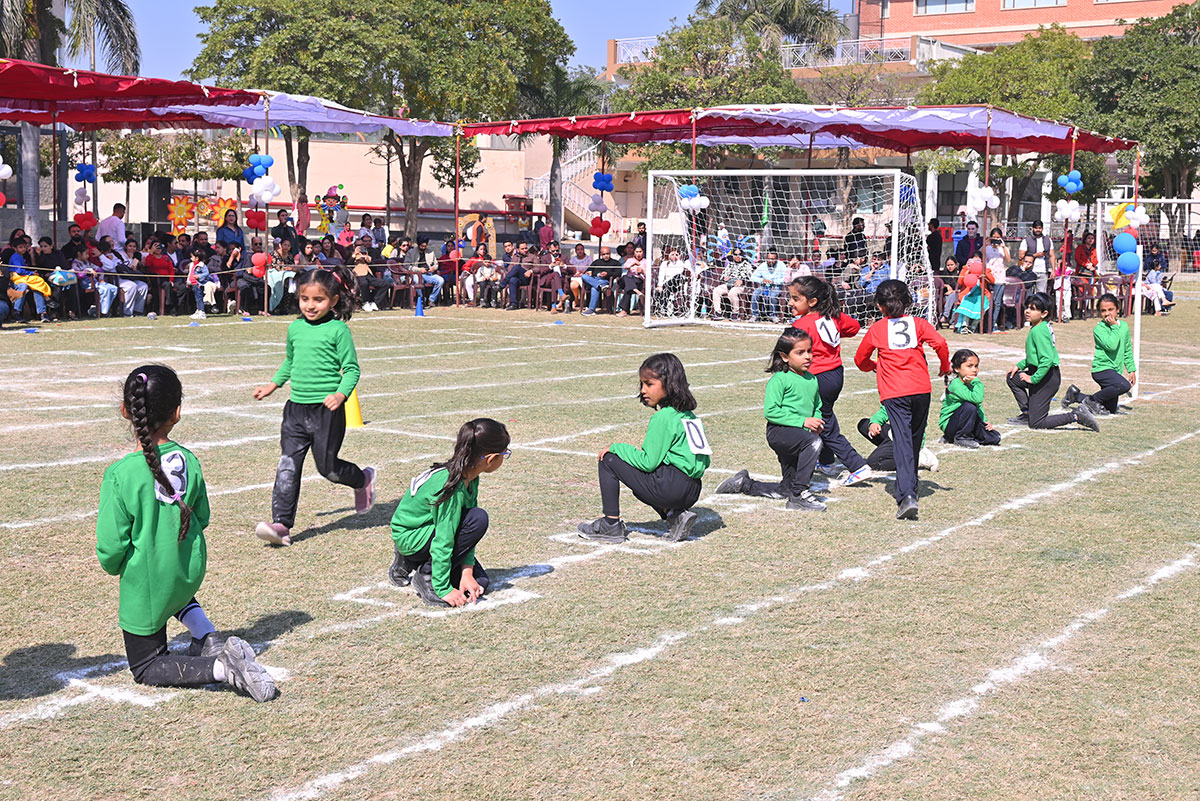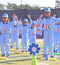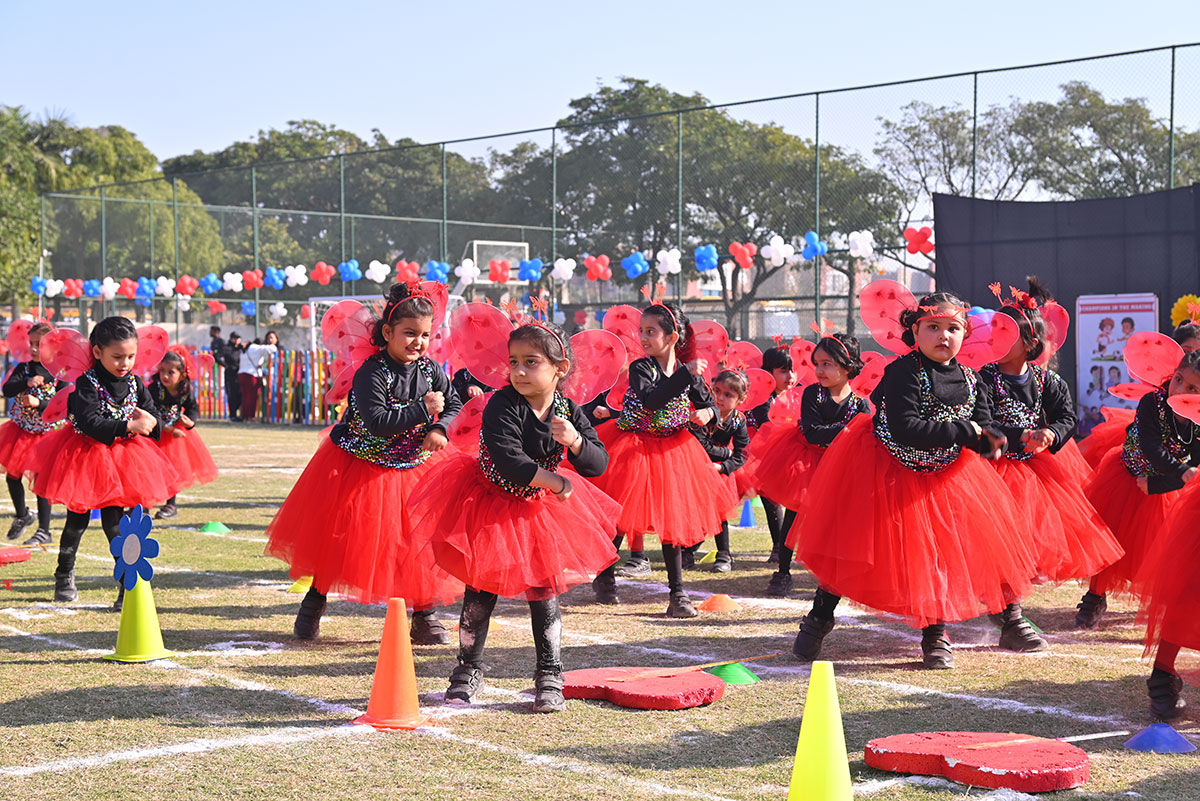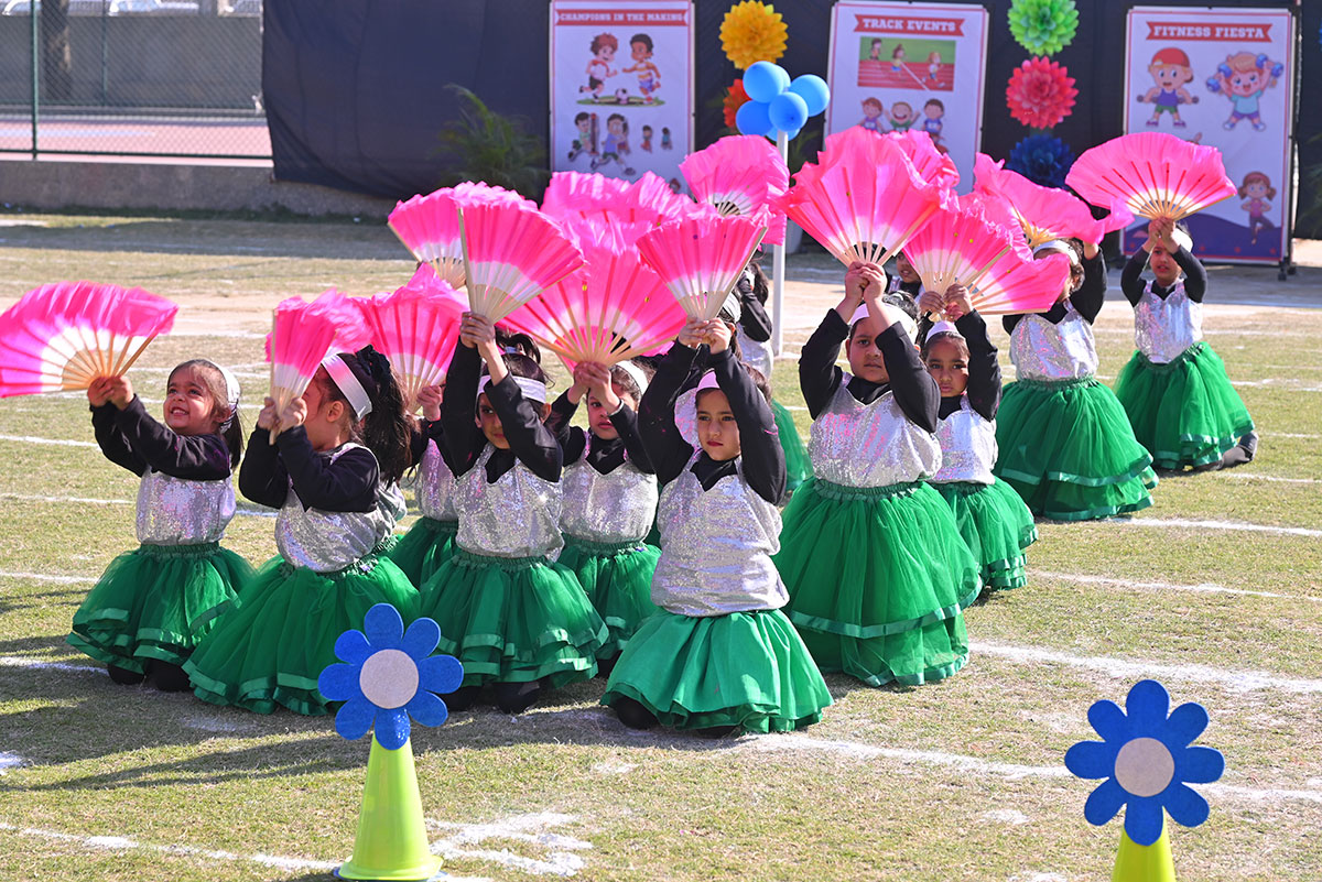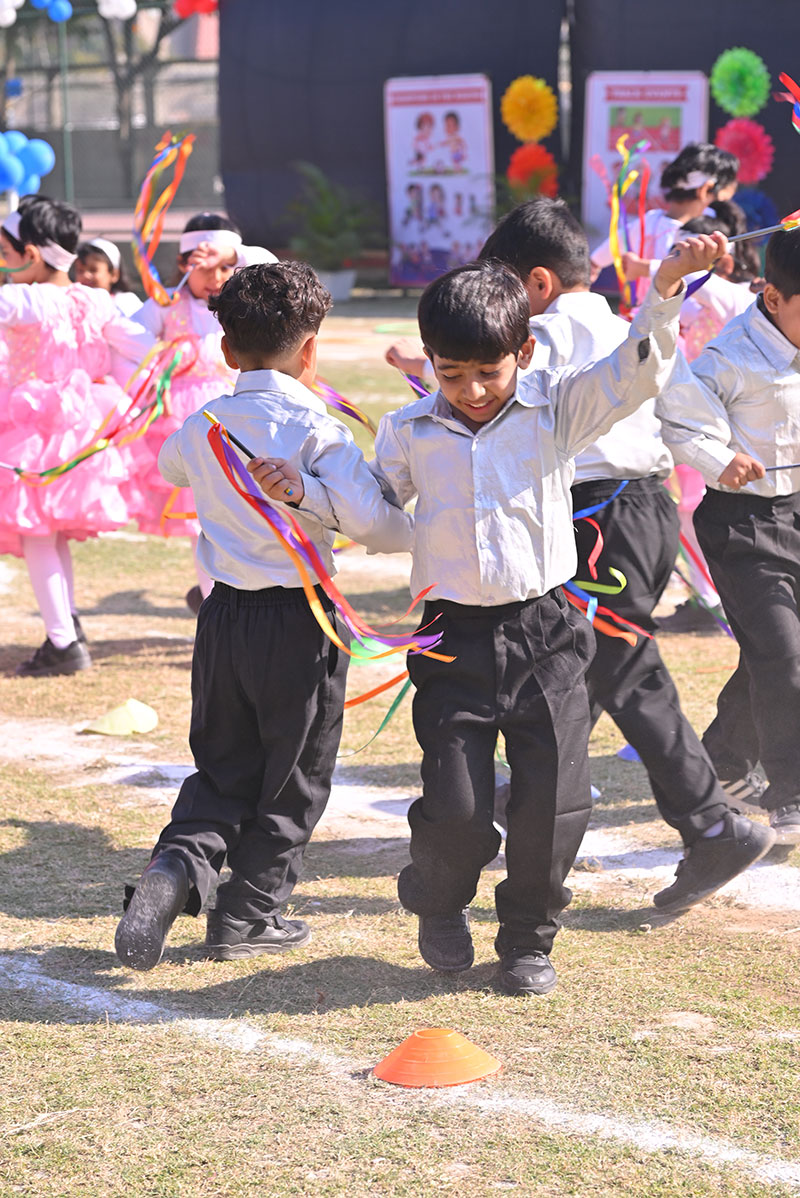 The Blue Warriors showcased their coordination in the Cricket Drill, while the Dynamic Dreamers mesmerized us with their Ribbon Drill. Sprinting towards glory, our tiny athletes participated in thrilling Track Events, displaying incredible determination and teamwork.