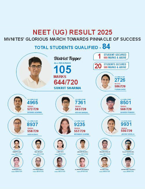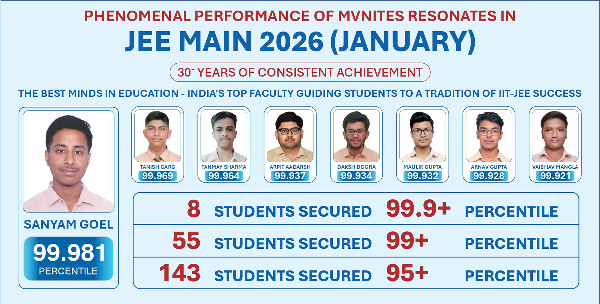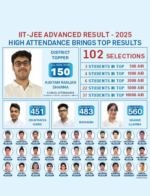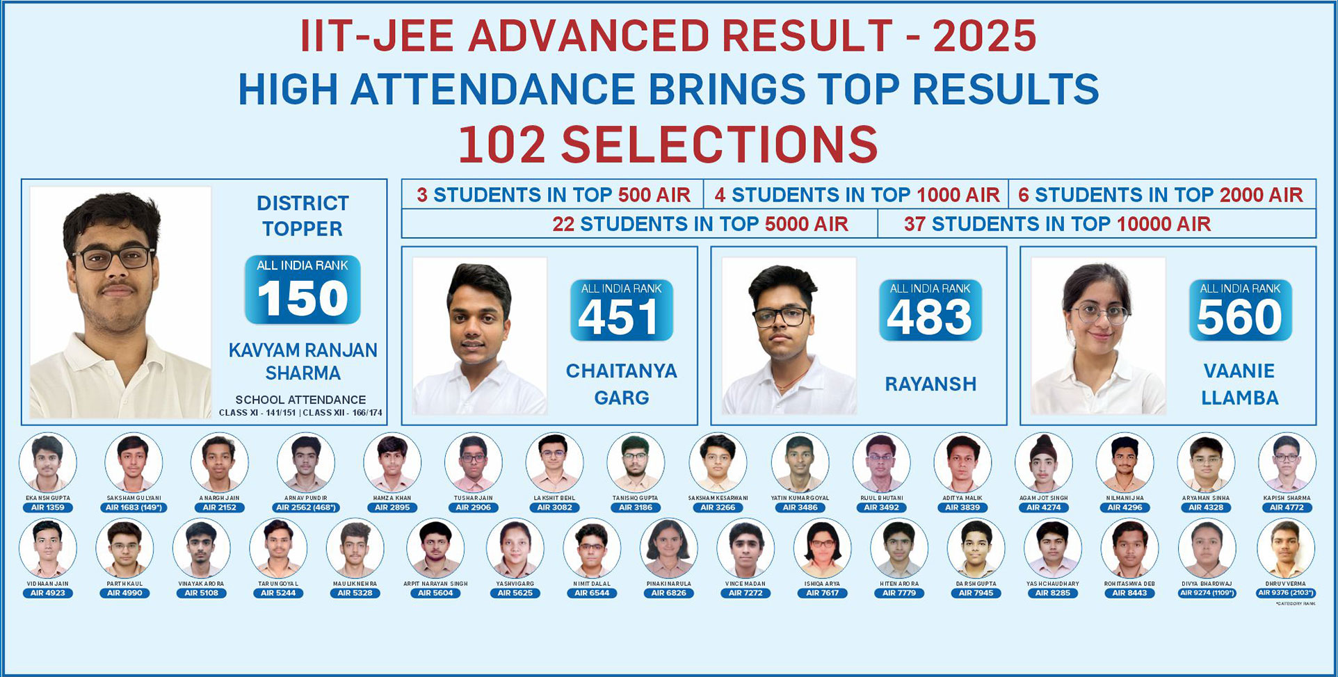 KAVYAM RANJAN SHARMA - AIR 248, CHAITANYA GARG - AIR 260, RAYANSH GUPTA - AIR 340, EKANSH GUPTA - AIR 635, YASH CHAUDHARY - AIR 674.