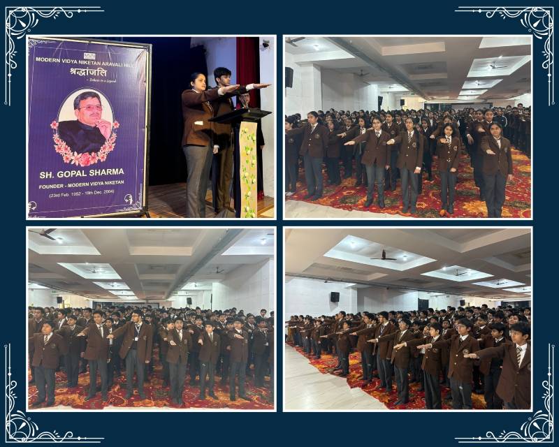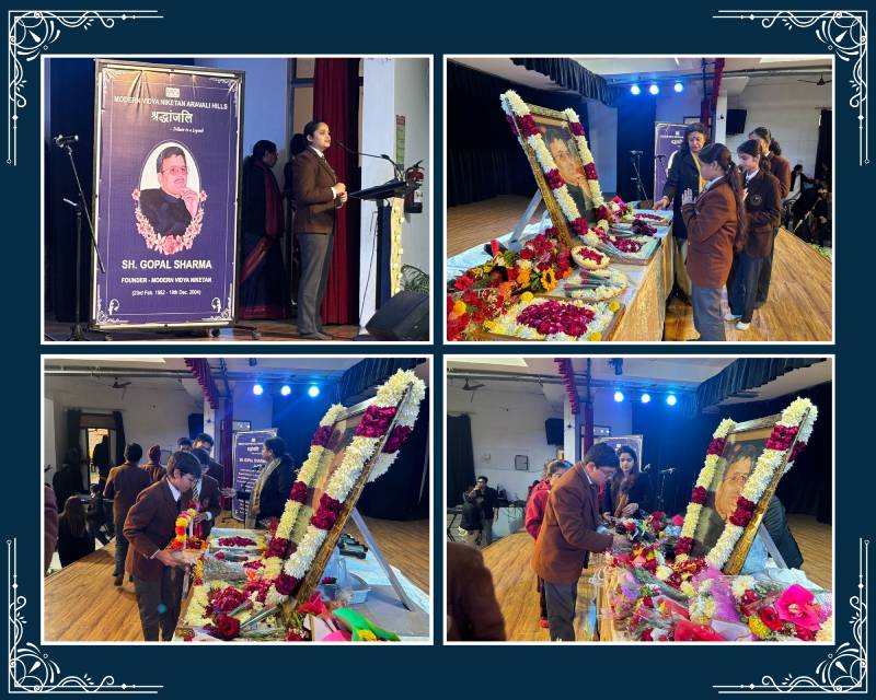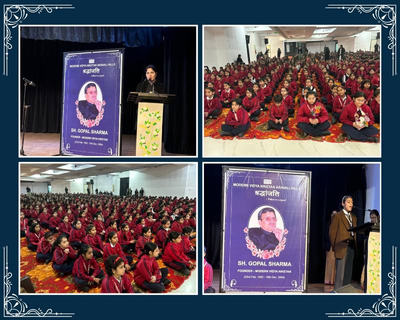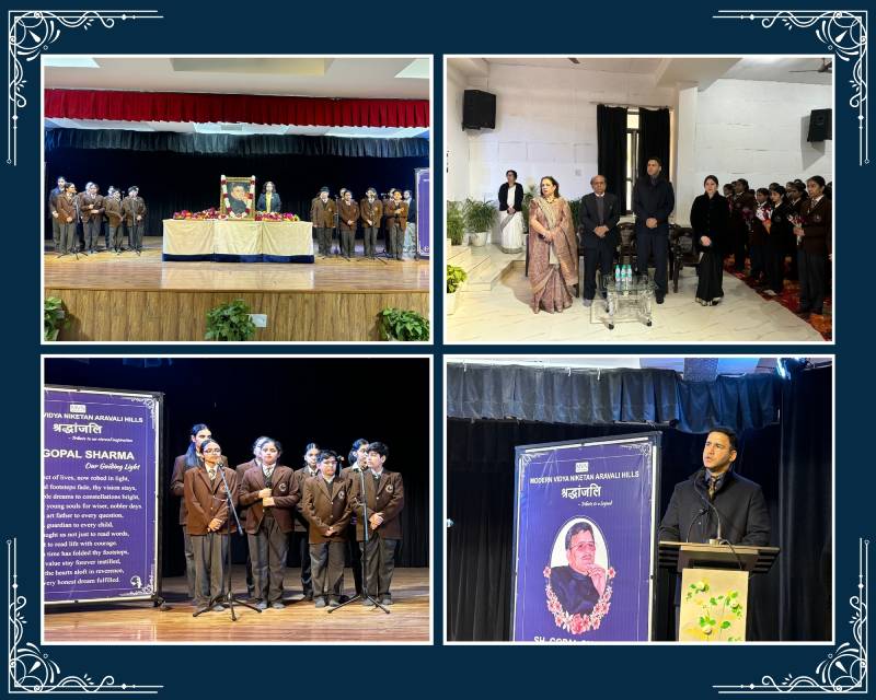 The school solemnly observed Shradhanjali Diwas on 19 December to honour its revered founder, Shri Gopal Sharma Sir. The occasion reflected deep gratitude as the school community remembered his visionary leadership and enduring legacy. Students marked the day through meaningful activities under the theme ‘25 Glorious Years of MVN Aravali Hills’. They engaged in a plantation drive, designing vertical gardens and eco-friendly wreaths symbolising responsibility and hope for a sustainable future.