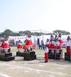 The Blue Warriors showcased their coordination in the Cricket Drill, while the Dynamic Dreamers mesmerized us with their Ribbon Drill. Sprinting towards glory, our tiny athletes participated in thrilling Track Events, displaying incredible determination and teamwork.