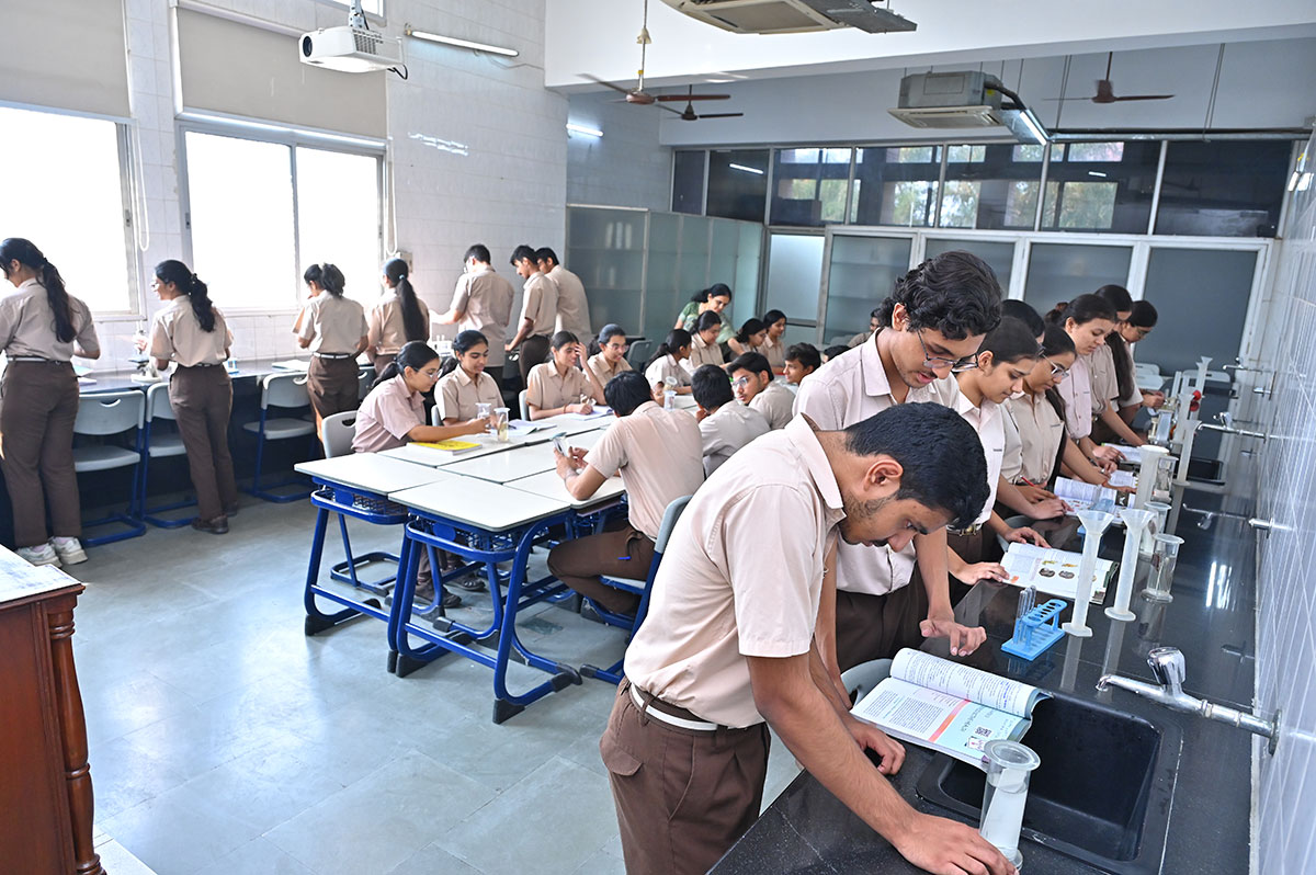 Science is synonymous with curiosity, testing and experimenting. It is the refinement of everyday thinking. The practical application of science based concepts of day-to-day life is taught to students in a congenial and safe environment. Our science labs are spacious and well equipped with the latest apparatus to meet the curriculum requirements for Physics, Chemistry and Biology. Under the professional guidance and assistance of our expert faculty, students interact directly with the data gathered, test and experiment the scientific theories and concepts that in turn sharpens their ability to analyze, collate compute and deduce. The labs are regularly upgraded with the latest equipment, instruments, specimens etc. The State-of-the-Art Science Labs (Physics, Chemistry and Biology) provide scientific literacy to all as a part of a liberal education and prepare children for further study and research work.
