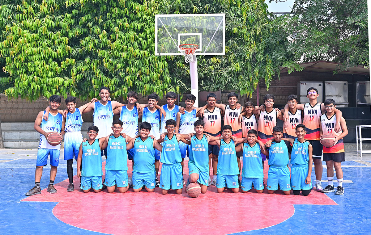 Ambitious goals make way for outstanding achievement hence the importance of sports in the life of a student is invaluable. Important values like discipline, responsibility, self-confidence, sacrifice, team – spirit and accountability are injected into the lives of the students. We, at MVN believe that every student is unique in physical endowment and thus, the array of sporting activities has to be diverse enough to suit various aptitudes. Hence, special training regimes are individually developed keeping in view the abilities, talent and potential of every child. The school building houses a basketball court, badminton court, skating rink, volleyball court and facilities for gymnastics and table tennis.
