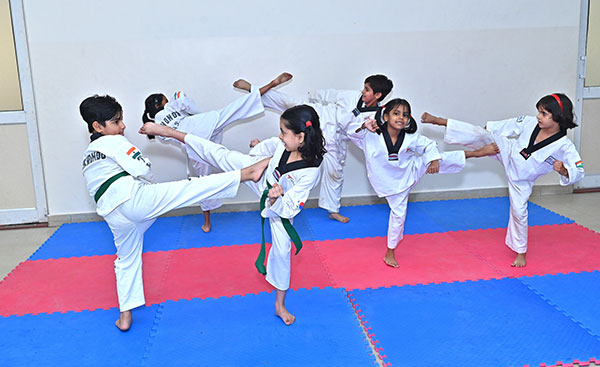 Combat sports today are recognized as an art form and are considered to be amazingly beneficial for enhancing the functioning of all of our senses. It adds on to our strength, alertness and response, endurance and so much more. Taekwondo strengthens mental and physical strength. It gives a sense of self-discipline at an early stage of life. The room is equipped with mats, fan-pads, power-pads, chest guards, head-guards, shin-guards and other Taekwondo kits.