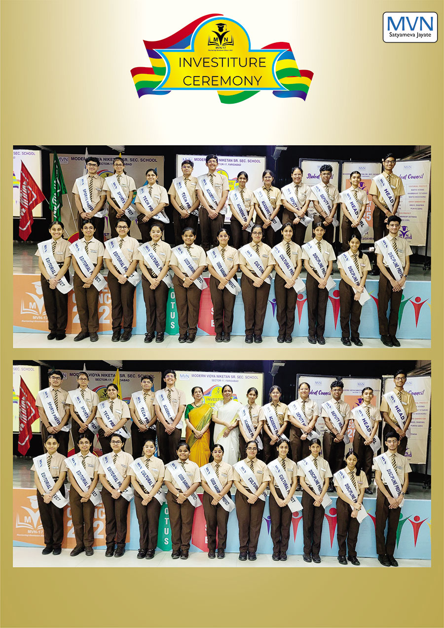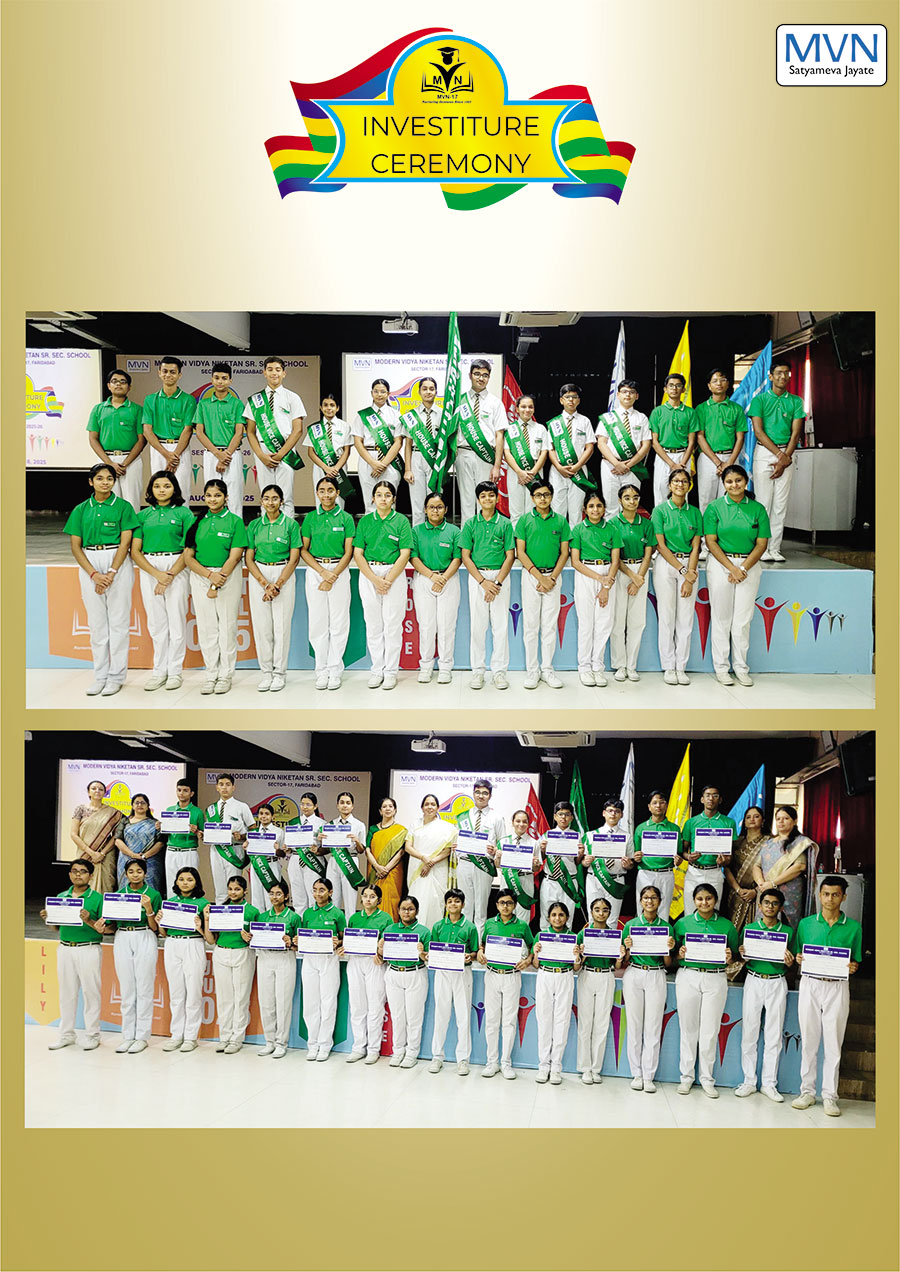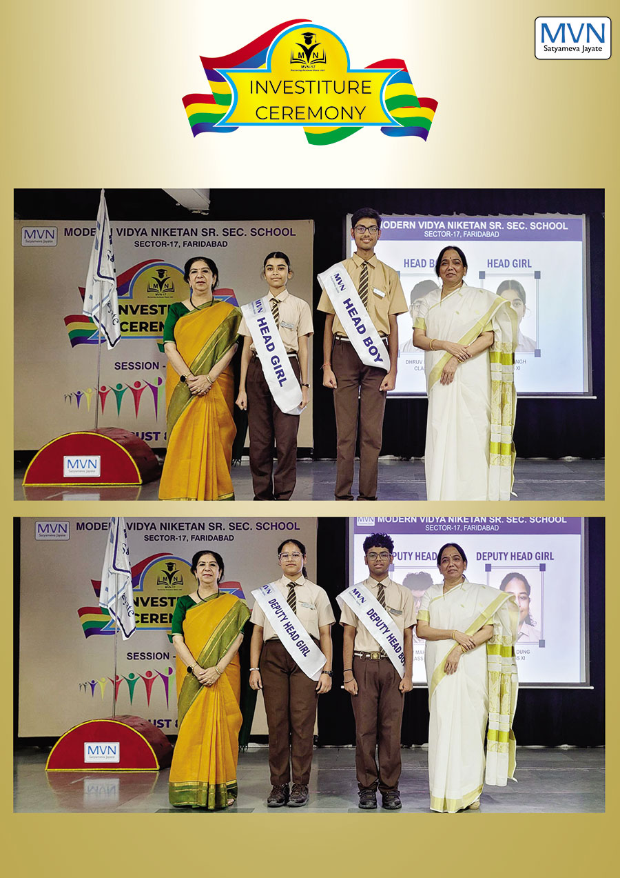 MVN School, Sector-17, recently held its solemn Investiture Ceremony for the 2025-26 session, formalizing the induction of its new Student Council. The event commenced with a disciplined march-past, symbolizing the leaders' commitment to the school’s legacy. The office bearers took a heartfelt oath to serve with dedication, after which they were conferred with their sashes and badges by the Principal and school coordinators, marking the official commencement of their leadership journey.