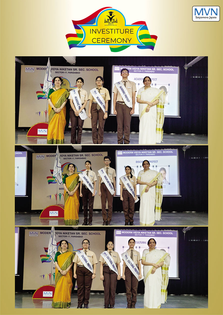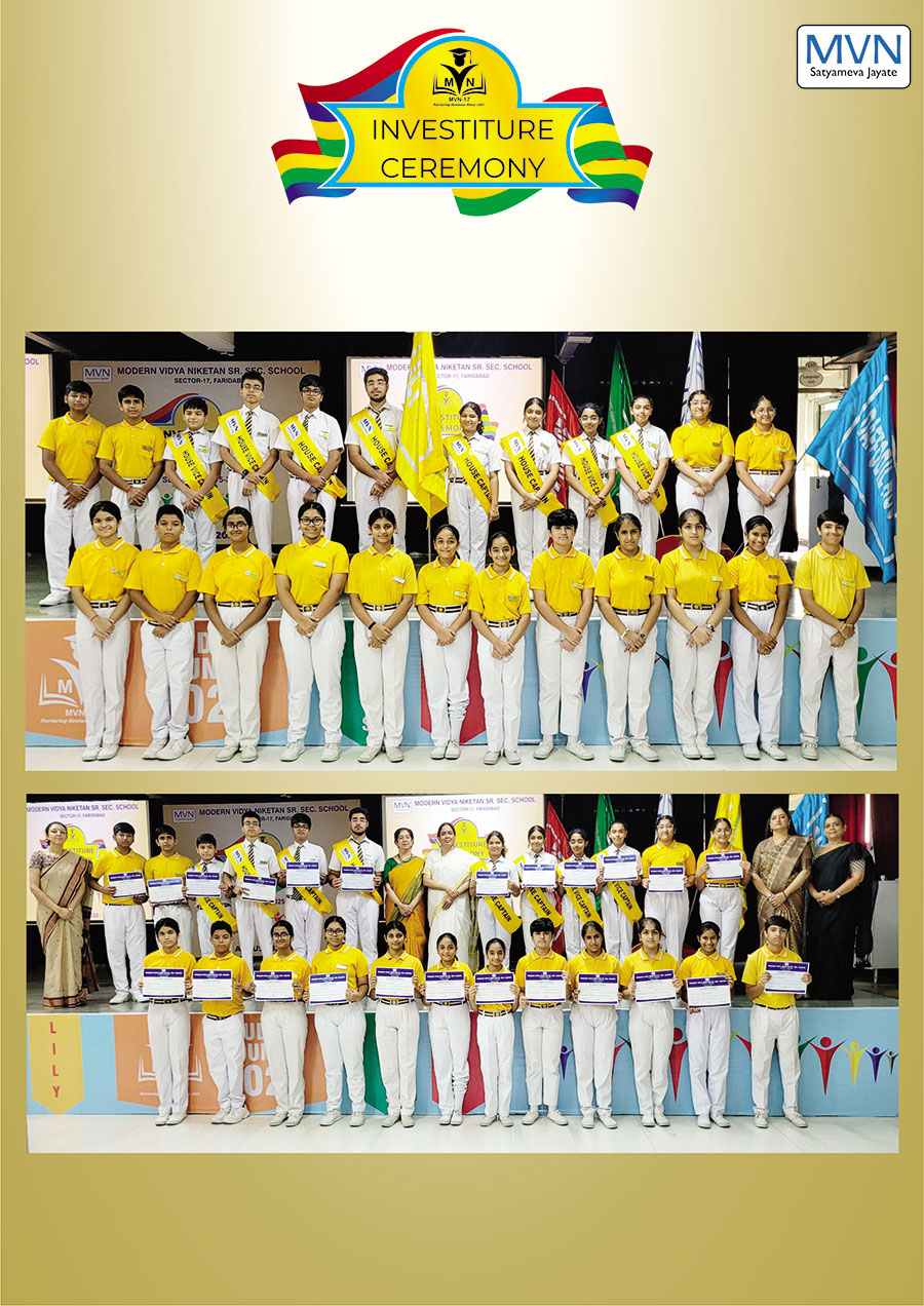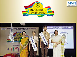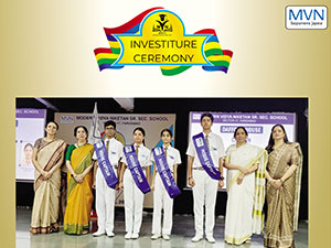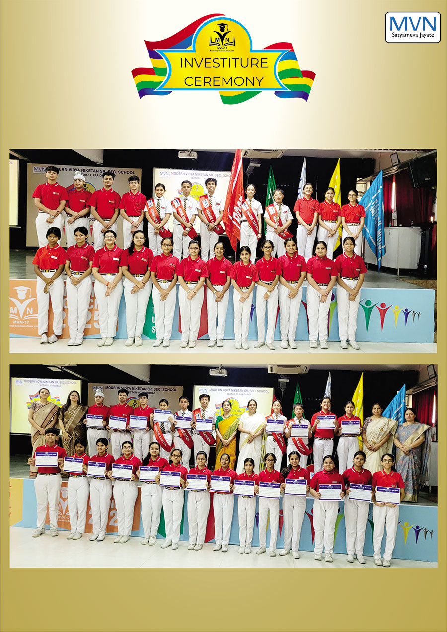 MVN School, Sector-17, recently held its solemn Investiture Ceremony for the 2025-26 session, formalizing the induction of its new Student Council. The event commenced with a disciplined march-past, symbolizing the leaders' commitment to the school’s legacy. The office bearers took a heartfelt oath to serve with dedication, after which they were conferred with their sashes and badges by the Principal and school coordinators, marking the official commencement of their leadership journey.